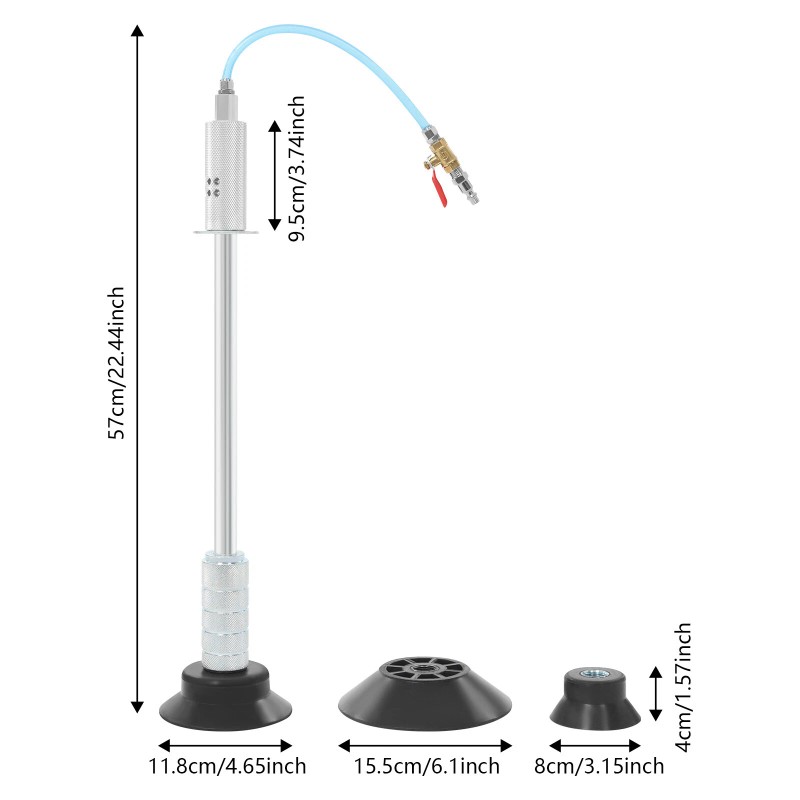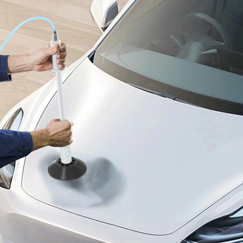 Convenient to Use: You just need to connect an air pump(not included), turn on the top switch of the puller, align the suction cup with the concave part of the car, and then pull the cylindrical hammer up and down to repair it. After use, the compressed air inside the suction cup can be quickly released by opening the exhaust valve, which facilitates the detachment of the tool from the adsorbed workpiece.