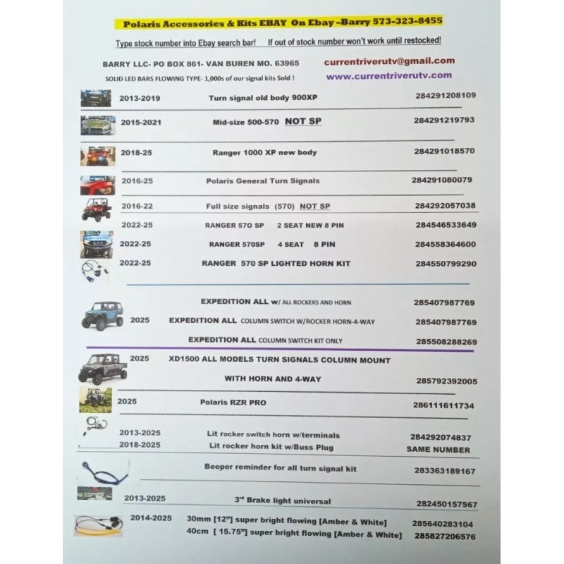 Unbranded POLARIS CLUSTER LIGHT ARROWS KIT 2018-2025 RANGER XP AND GENERAL2019-20