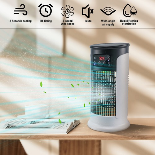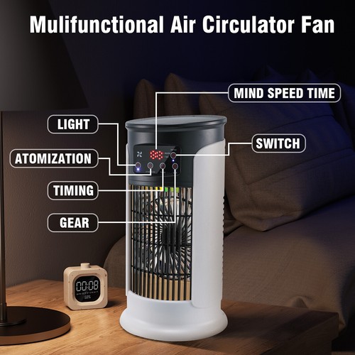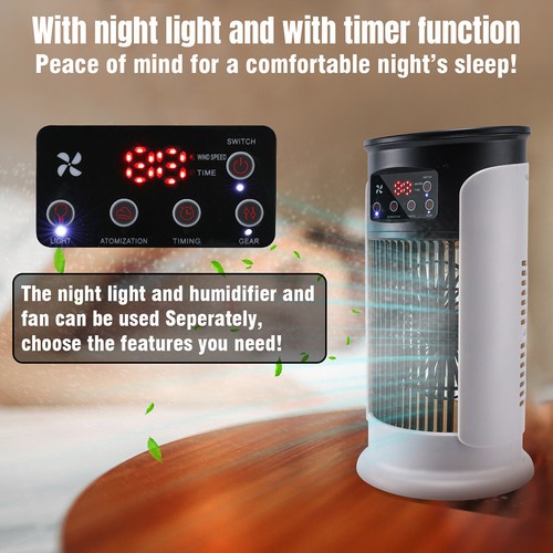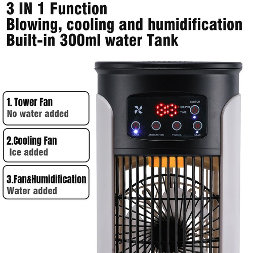 -- Quick Cooling: The air conditioning fan is a portable fan that integrates atomization, humidification and cooling. You can add cold water or ice cubes to the water tank to achieve the cooling effect.