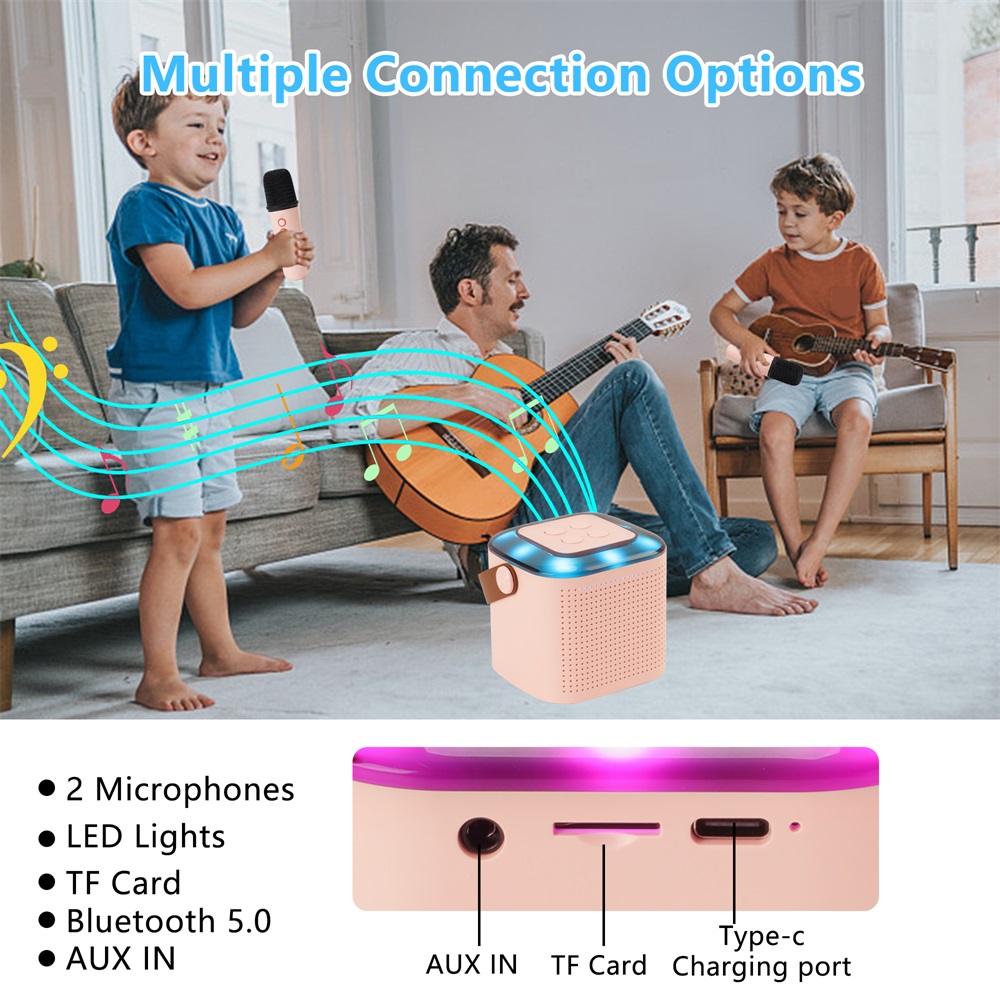 Unbranded Portable Bluetooth Karaoke Machine for Kids Speaker w/ 2 Microphones for Parties