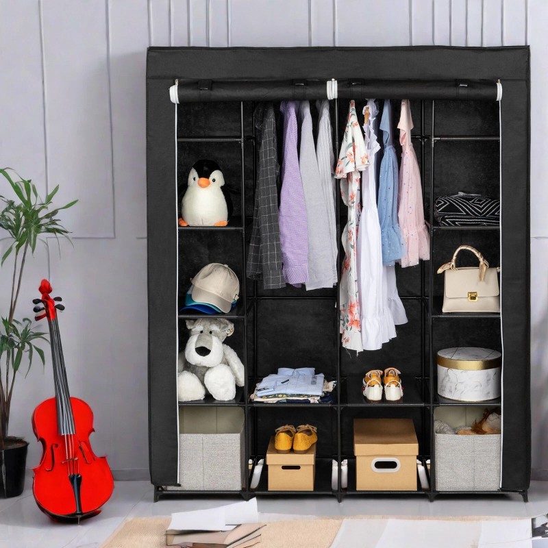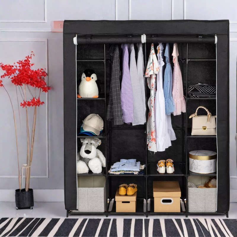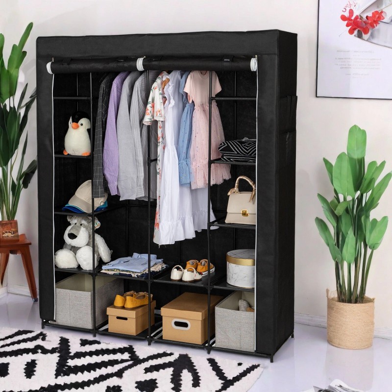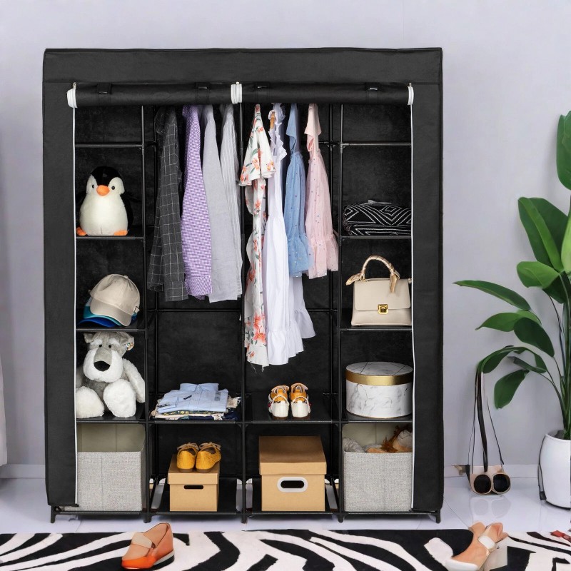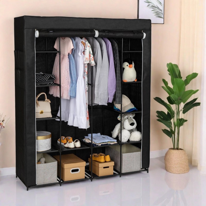 Troubled about storage issues in your house? Try our 5-Layer 14-Compartment Non-woven Fabric Wardrobe Portable Closet! With 5 layers and 14 spacious compartments, it adds more space for all your clothes and accessories and makes your home neatly organized. Two hanging rods on the top let you store longer outfits. Crafted into a sturdy alloy construction with non-woven fabric cover, it is durable for long-lasting use. Rolling front doors keep the contents protected from dust and moisture. Don't hesitate to bring it home!