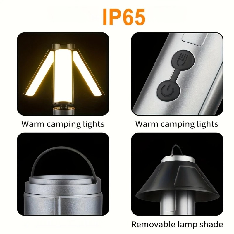 Detachable lampshade. Invisible hook design, easy to hang. Its multifunctional design allows it to be used as a flashlight, desk lamp, camping light, work light, backpack light, tent light, or ambient light.