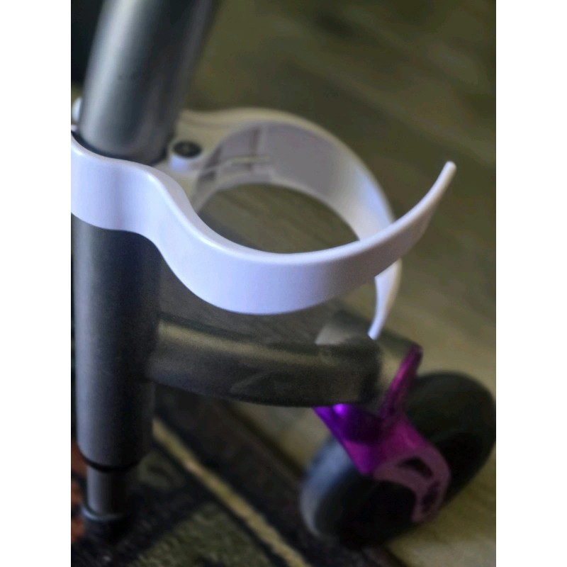 These cup holders can also be used for a range of other modes of transport also — for example: bikes, scooters, prams and push chairs — even mobility devices, such as wheelchairs, crutches, walking frames, scooters and even a good ol’ IV pole! If your pole is a wee bit smaller than this size, than we have some special inserts you can use (just enquire with us), or we have also seen electrical tape used to help create a surface to have an easily removable holder attach and detach quickly and easily as is needed!
