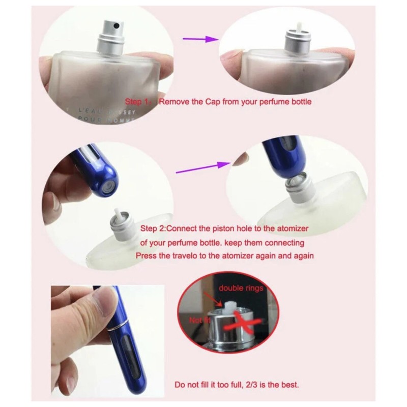 Easy to use and easy to fill/refill, no leakage, Just press the bottom against your favorite perfume gauge and keep clicking until it is refilled.