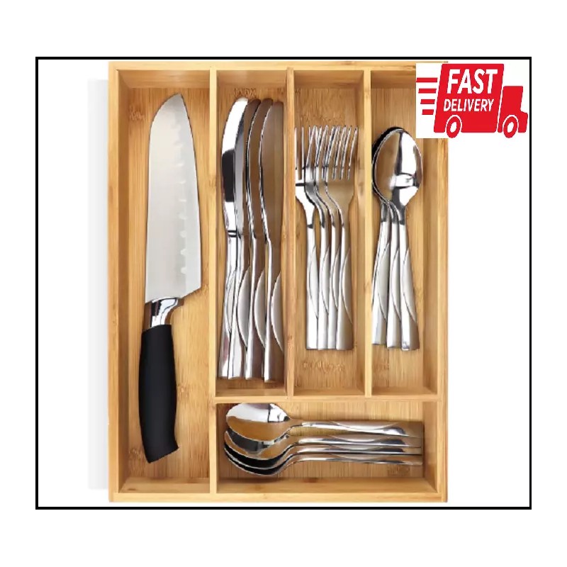 Unbranded Pristine Bamboo Silverware Organizer– Utensil Organizer for Kitchen Drawers –...