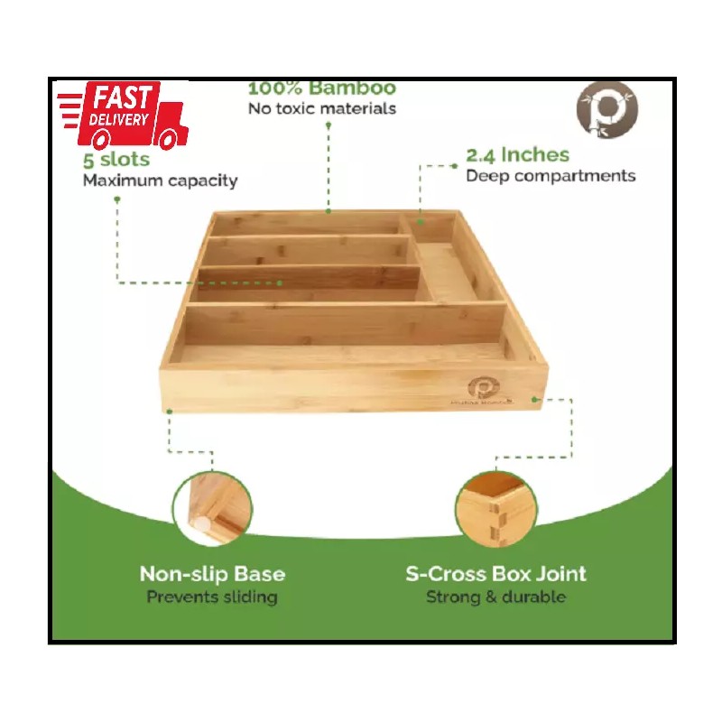 - SUPERIOR DESIGN SOLUTIONS: The only bamboo drawer organizer that offers all-in-one features: 100% bamboo (even the base), No Toxic MDF, Slip-resistant, Extra Depth, Strong & Durable Construction. This is undoubtedly the best drawer organizer available and our reviews are the testament of the quality.