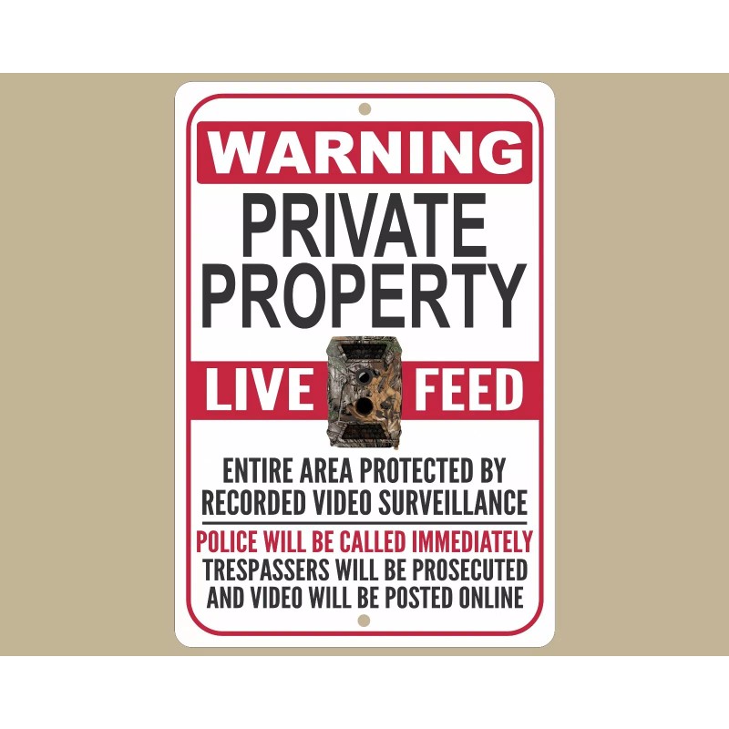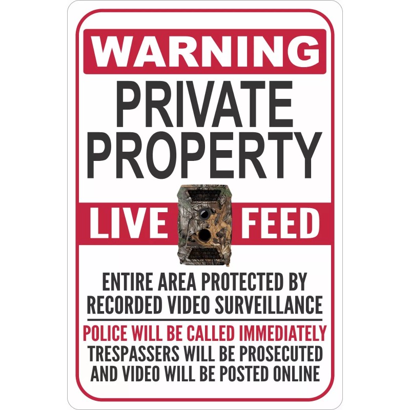 Unbranded Private Property Aluminum Surveillance Sign, Security Camera Warning, Live Video