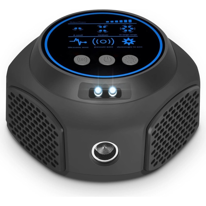 - 【Multi-functional Rodent Repeller】4 working modes to achieve the effect you want. TEST = Test Tone (to check if the device can work). Ultrasonic wave (effectively repels mice). Pressure wave (effectively repels squirrels). Electromagnetic wave (repels all pests, mice and insects) Press the button to turn on the light mode, the light will automatically flash in the dark environment to interfere with the rodent's vision. If you don't want to use the LED strobe light function, just press the LE