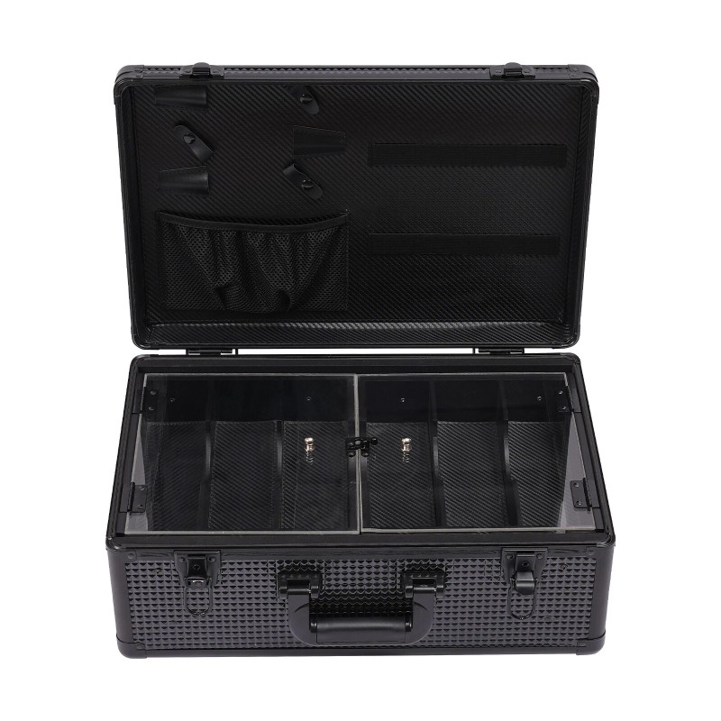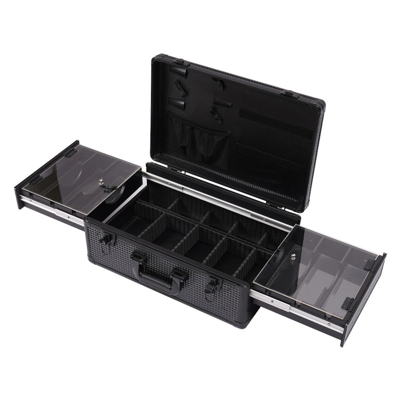 Baffle: Two Transparent Baffles Made of Acrylic Are Set Inside the Barber Case, Which Can Be Opened from Left to Right Through the Latch, Which Is Conducive to Reducing Dust Entering the Internal and Side Drawers.