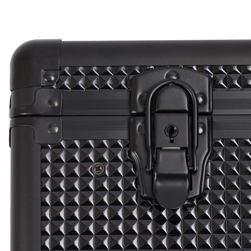 Black Aluminum Alloy Professional Barber Case in Backpack Travel Organizer Pro Description  A good hairstyle and makeup can bring us a new look, but messy tools often affect our work efficiency. Our barber case can eliminate your concerns very well. Made of high-quality aluminum alloy and plastic, this case is durable and not easy to rust, so you can use it for a long time and save costs. In addition, the large capacity and compact design can provide convenience for your daily use and carry. With the help of this product, your items can be organized neatly.   Key Features Exquisite Material: The barber case is mainly made of aluminum alloy and plastic, which is corrosion-resistant, not easy to deform, and durable. Therefore, you can use it for a long time without frequent replaceme