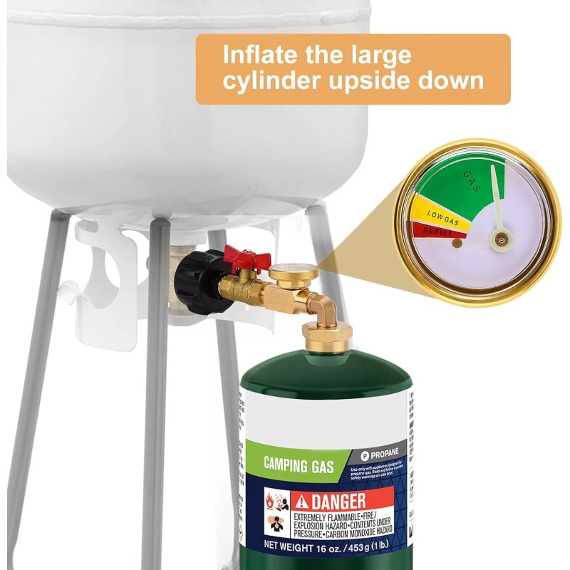 • 【Easy Filling】 The 90-degree elbow design makes it easier for gas to flow to the small cylinders. Simply attach to your large tank for refilling in 1 minute.