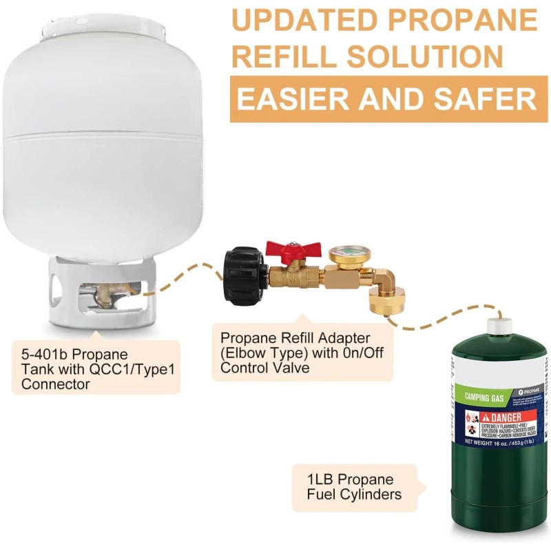 • 【Upgraded Design】 Featured with a propane ON-Off control valve, prevents gas leaks when connecting gas cylinders. You can easily control the refilling process with safe.