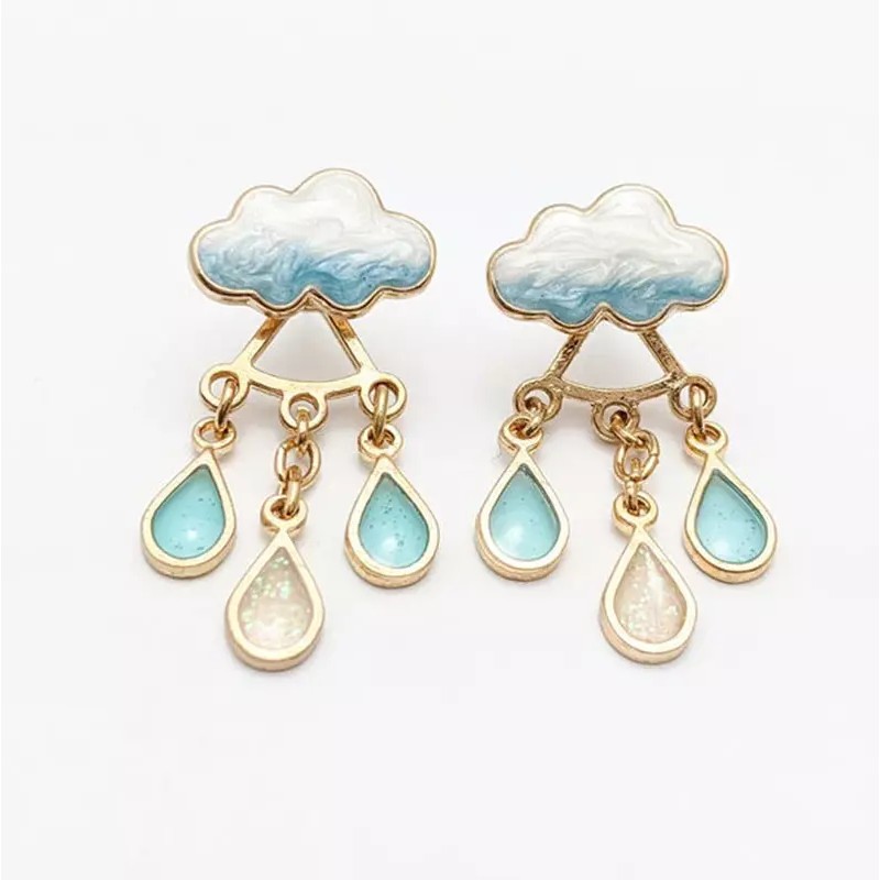 Unbranded Rain Cloud Storm Enamel Rhinestone Light Blue Crystal Stud Earrings, Cute Spring