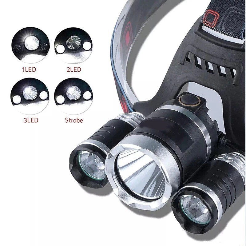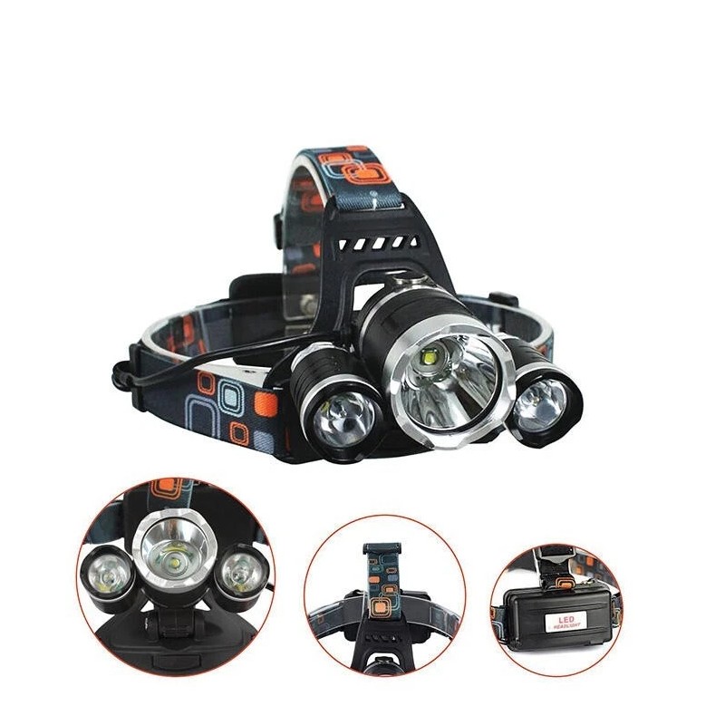 Unbranded Rechargeable LED Headlamp with 3 Heads – 18650 Battery Powered Headlight Torch