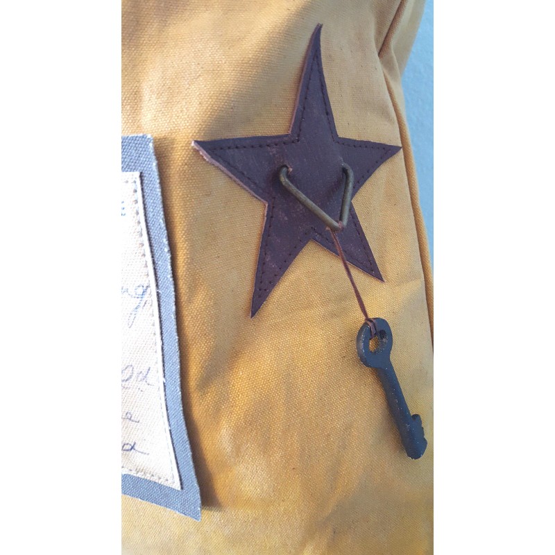 Unbranded Recycled Canvas Tote Reclaimed Bag Leather Handles Star and Skeleton Key Aviator
