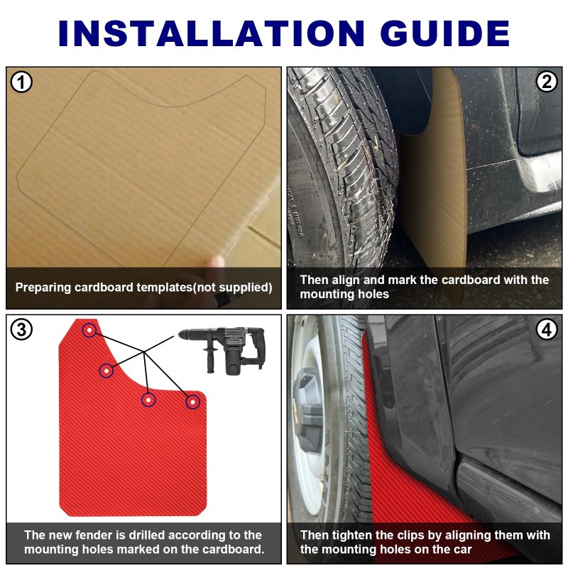 3. The new fender is drilled according to the mounting holes marked on the cardboard.