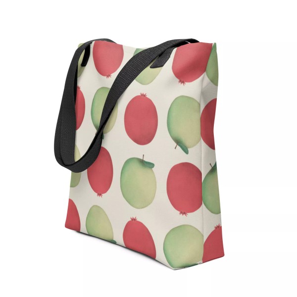 Introducing our delightful Red Pomegranate and Green Apple Tote Bag, a deliciously charming accessory that's as practical as it is stylish! Crafted from durable polyester, this tote is designed to carry your essentials with ease while adding a touch of fruity fun to your ensemble. The vibrant red pomegranates and green apples dance across the bag, creating a whimsical pattern that's sure to turn heads wherever you go. With its spacious interior and sturdy handles, it's perfect for everything from grocery runs to picnics in the park. Embrace the crisp sweetness of nature's bounty with our Red Pomegranate and Green Apple Tote Bag, and let your fashion sense shine as bright as a ripe apple or pomegranate!