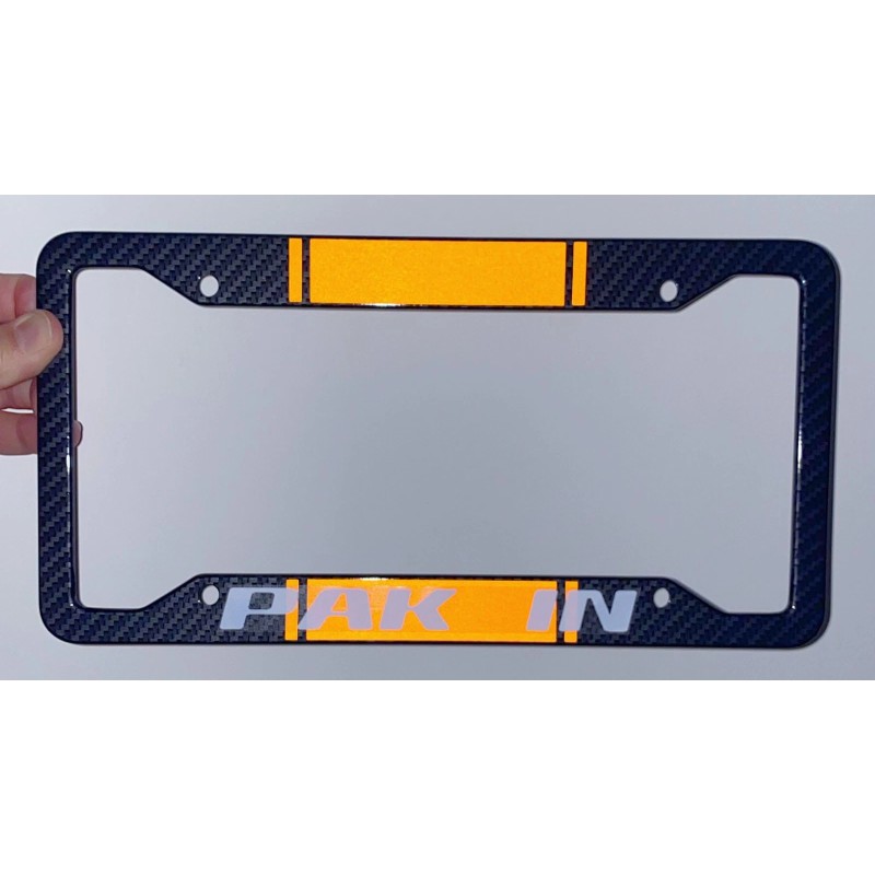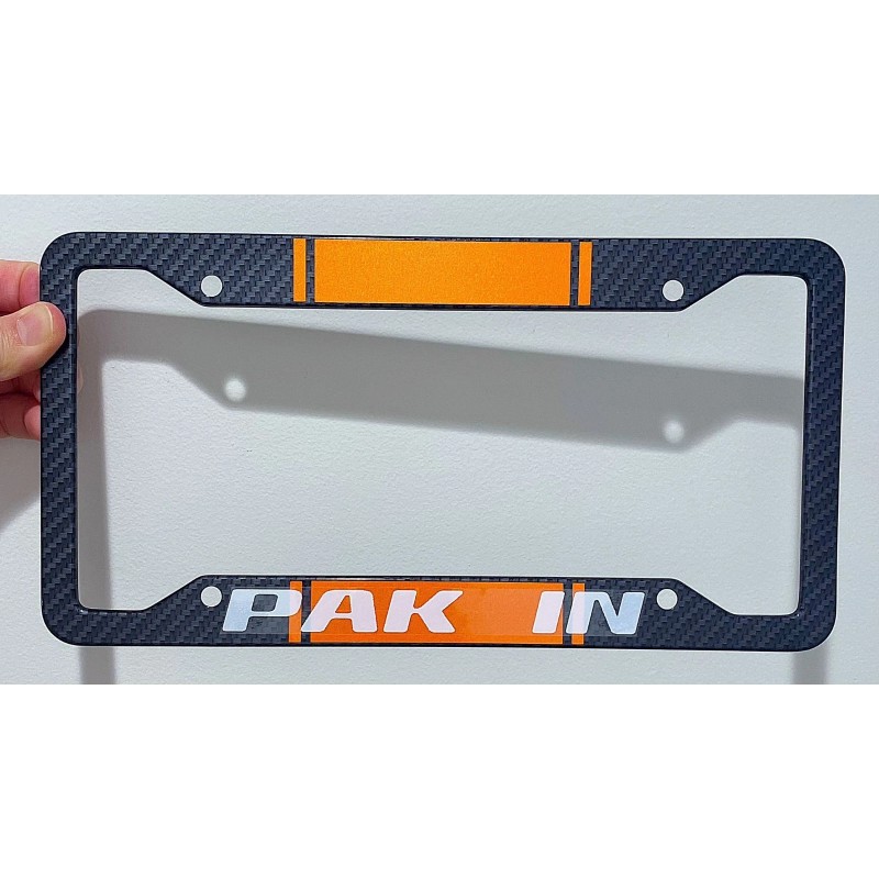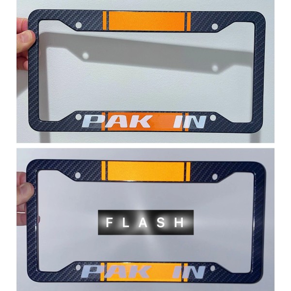 Unbranded Reflective Orange Pak In Metal Carbon Fiber Look License Plate Frame