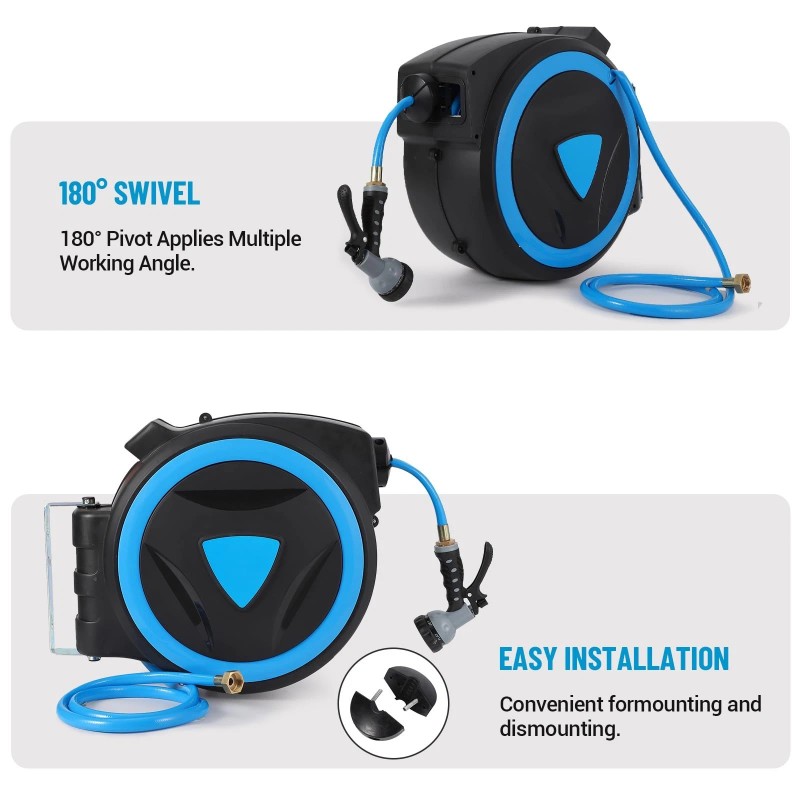 Automatic Function - The hose is incredibly convenient since it automatically locks in place when you draw it to the length you want. Simply keep drawing out the hose if you wish to expand it further. Pull the hose reel gently after usage, and it will automatically retract gradually.