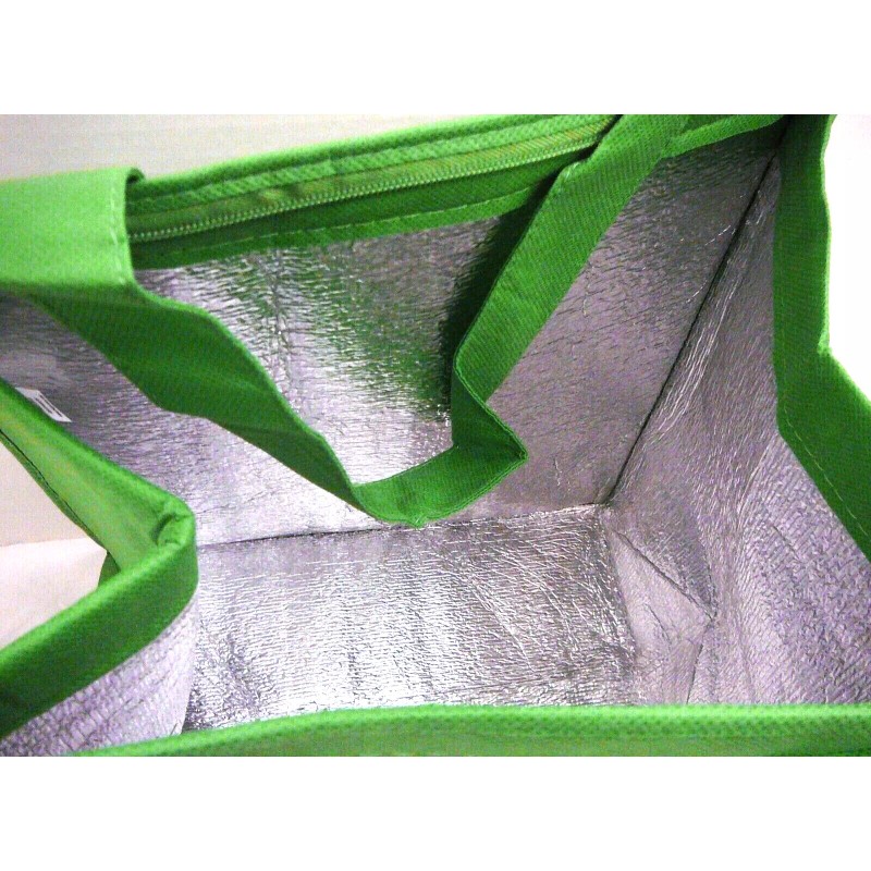 Unbranded Reusable Green Insulated Light Weight Collapsible Zip Top Grocery Bag w Handles