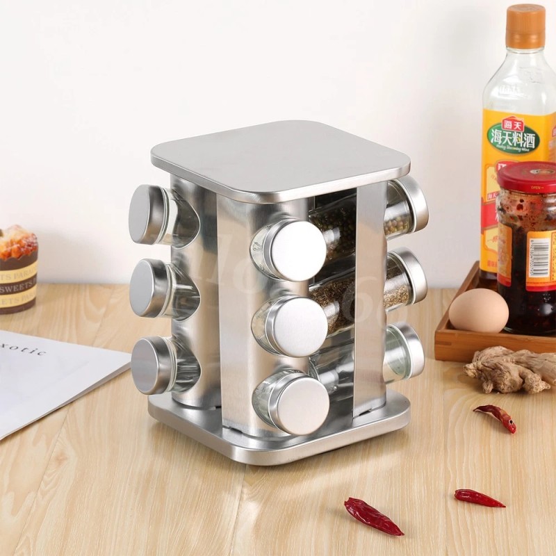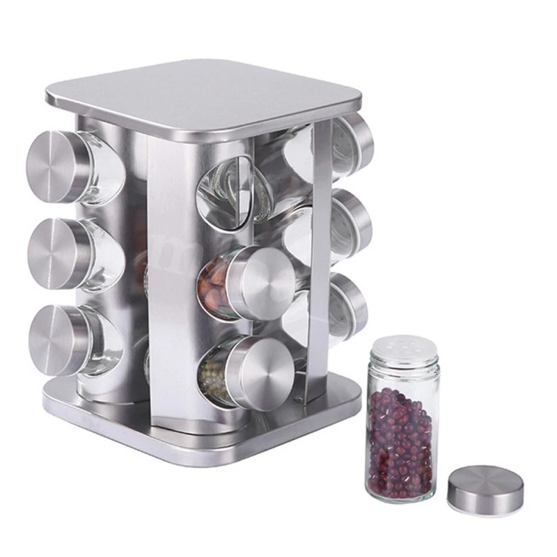 Unbranded Revolving Spice Rack Holder Seasoning Tower Organizer Stainless Steel Rotating