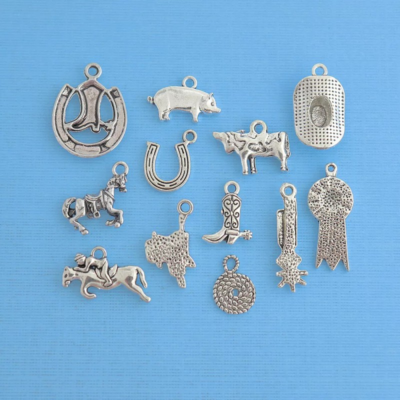 Unbranded Rodeo Charm Collection Antique Silver Tone 12 Different Charms - COL144