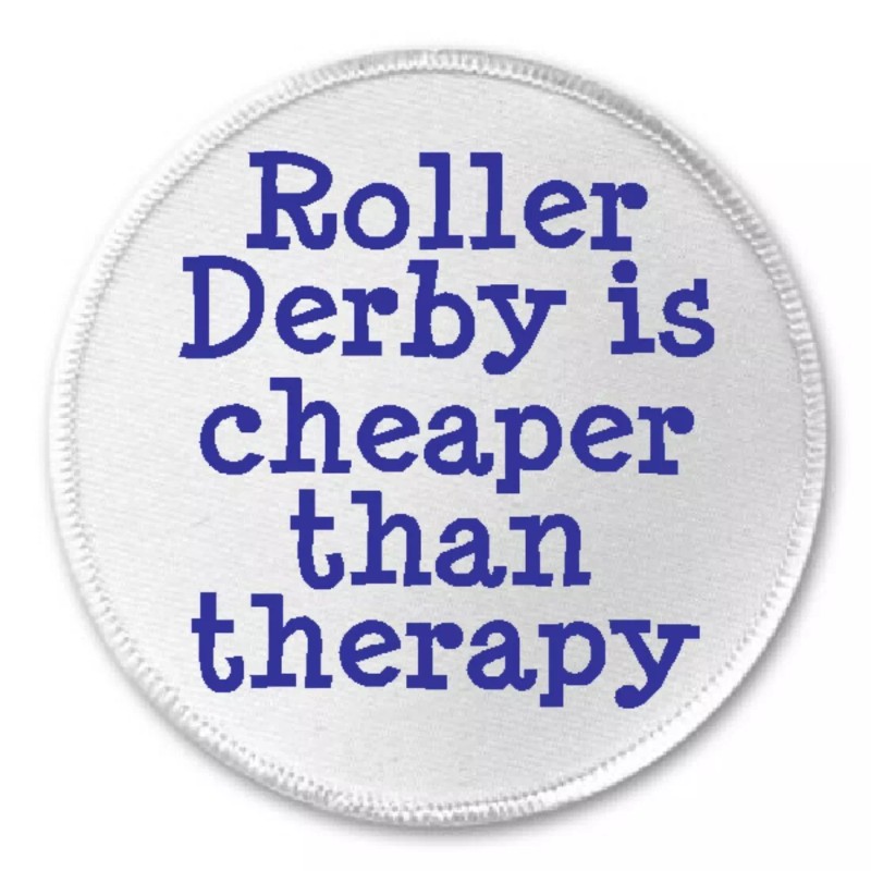 Unbranded Roller Derby Is Cheaper Than Therapy - 3" Sew / Iron On Patch Funny Joke Humor