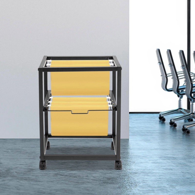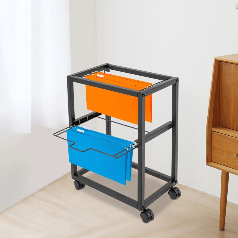 Unbranded Rolling File Cart Steel Organizer 2Tier Document Rack Literature Hanging Cabinet