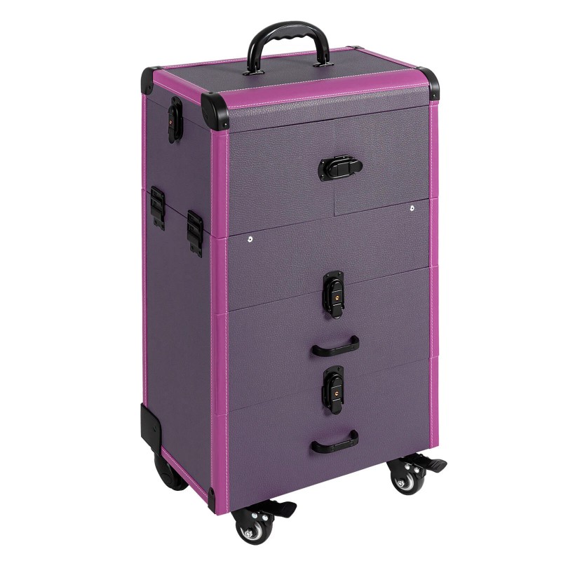 Unbranded Rolling Makeup Case Beauty Organizer Box Lockable Cosmetic Case Trolley