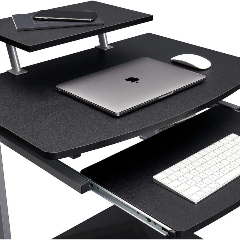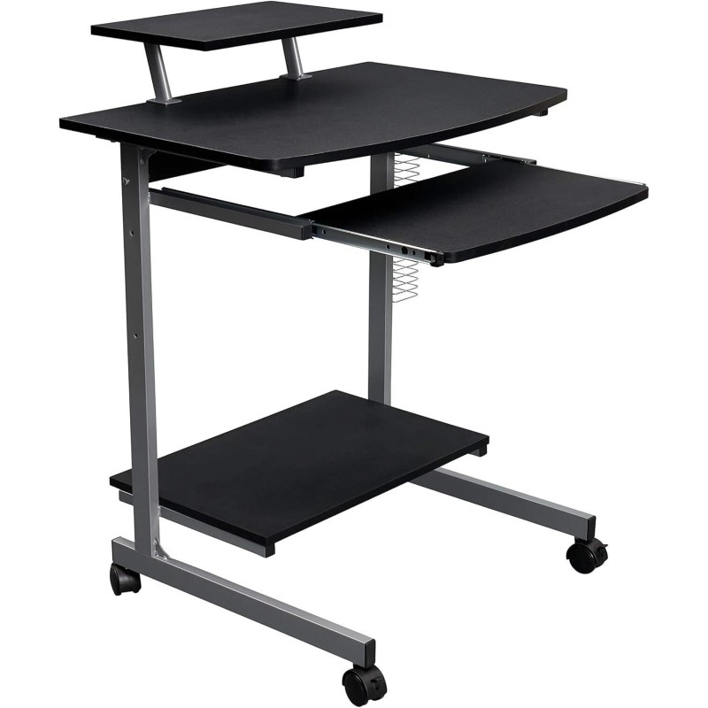 Sturdy and Durable Construction: This compact computer cart features heavy-duty MDF panels with a moisture-resistant PVC laminate veneer in a sleek graphite finish, complemented by a scratch-resistant powder-coated steel frame for long-lasting durability.