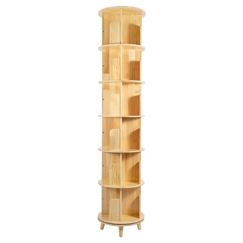 Unbranded Rotating Bookshelf Cylindrical Wooden Book Rack 6 Tier Plants Storage Display