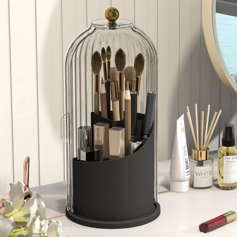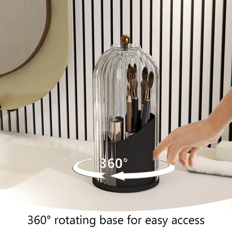 Unbranded Rotating Makeup Brush Holder with Lid Vanity Desktop Bathroom Countertop Luxury