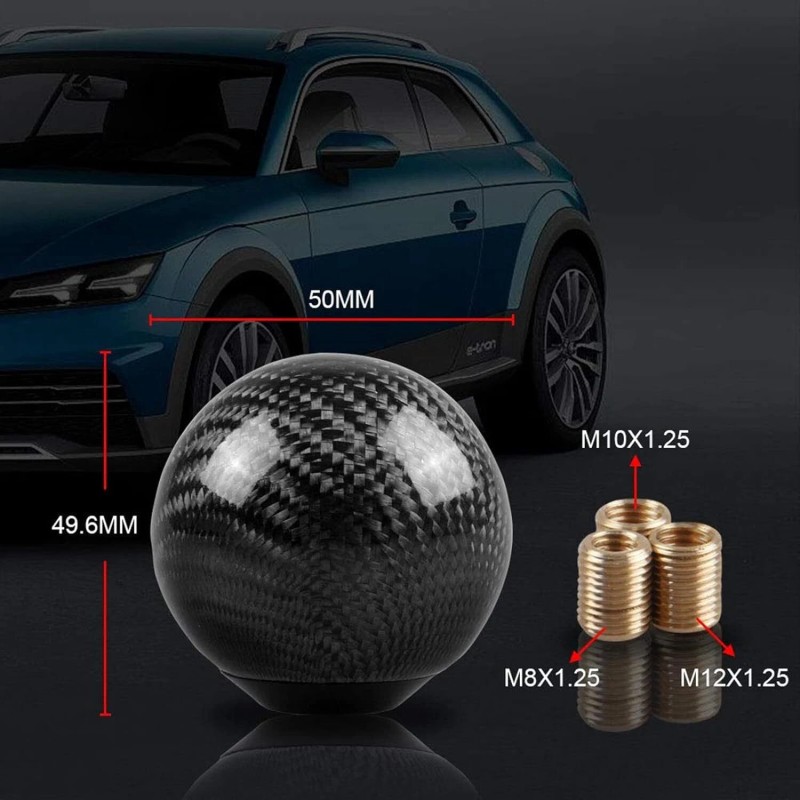 Unbranded Round Ball Shape Car Gear Shift Knob Shifter Lever w/Adapters Real Carbon Fiber
