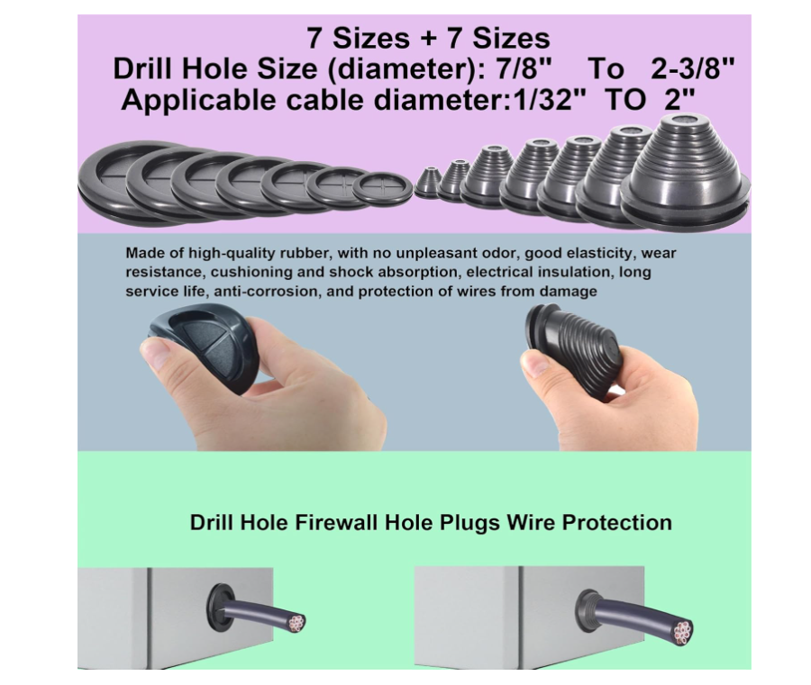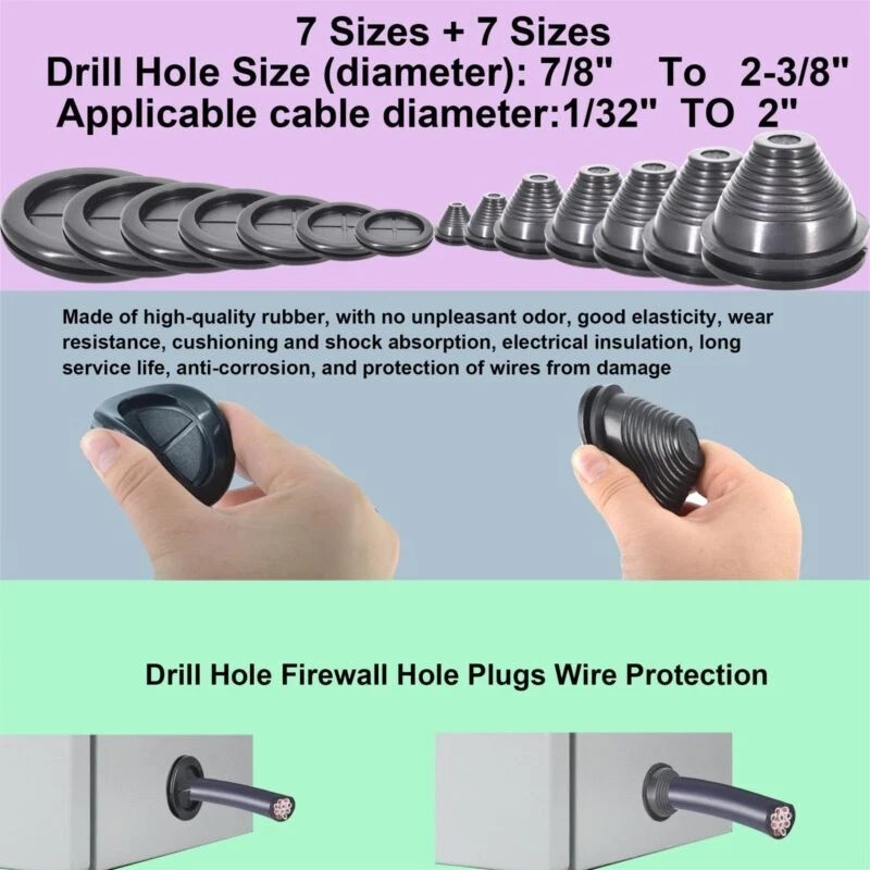 Rubber Grommets Wire Protection,Closed Rubber Grommet,Firewall Solid Closed Hole,Firewall Plug Grommet Synthetic Wire Protection Hole Grommets,for Drill Hole Wire Electrical Appliance Plumbing