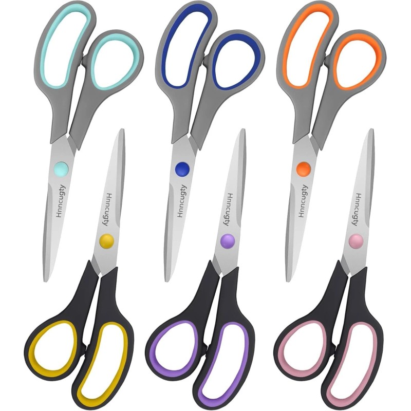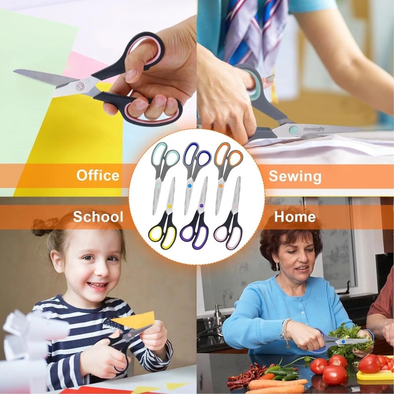 Scissors for Office School Supplies, 8" Scissors All Purpose Bulk Set of 6-Pack, Sharp Shears for Home Craft Sewing Fabric Middle School Student Teacher Supplies, Comfort Right/Left Handed