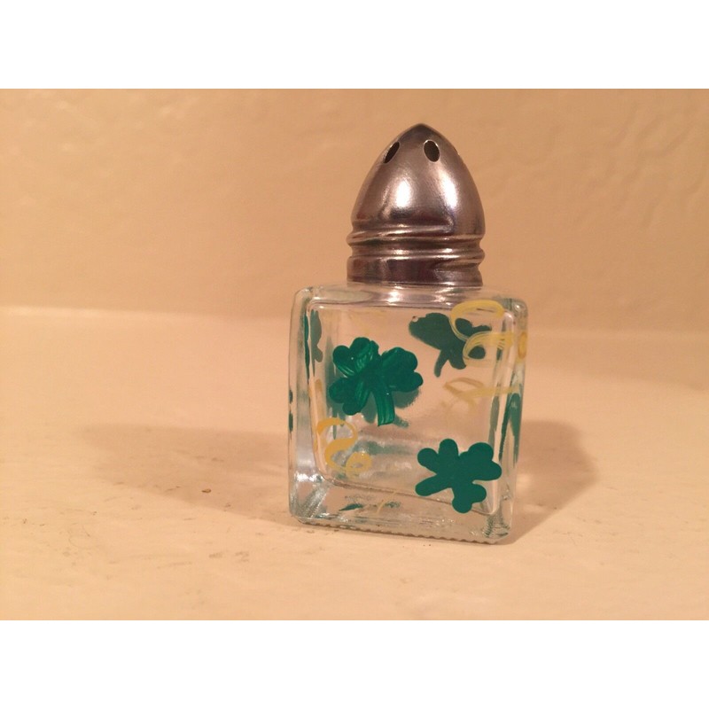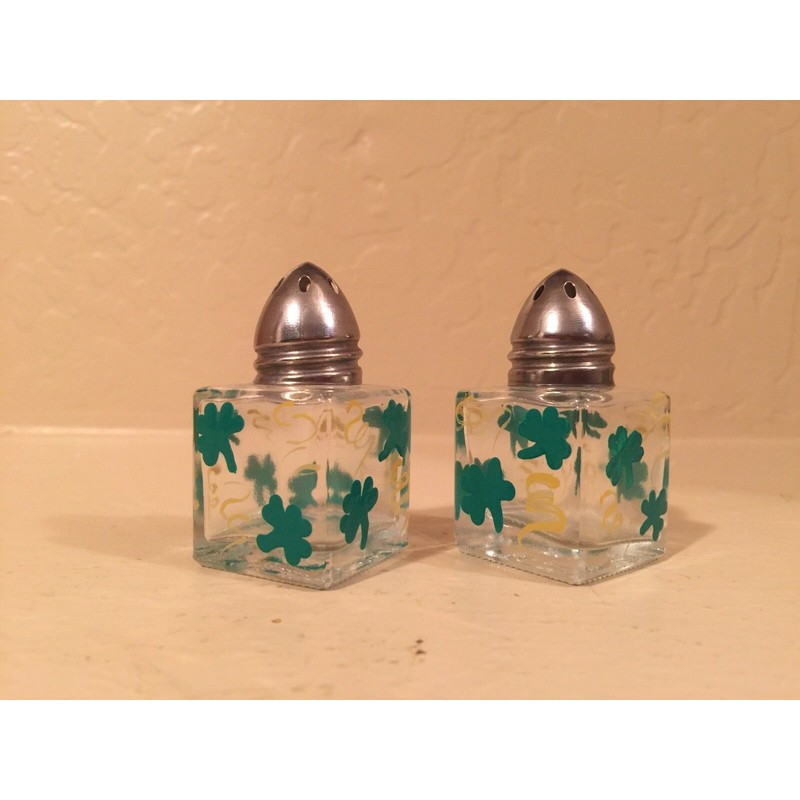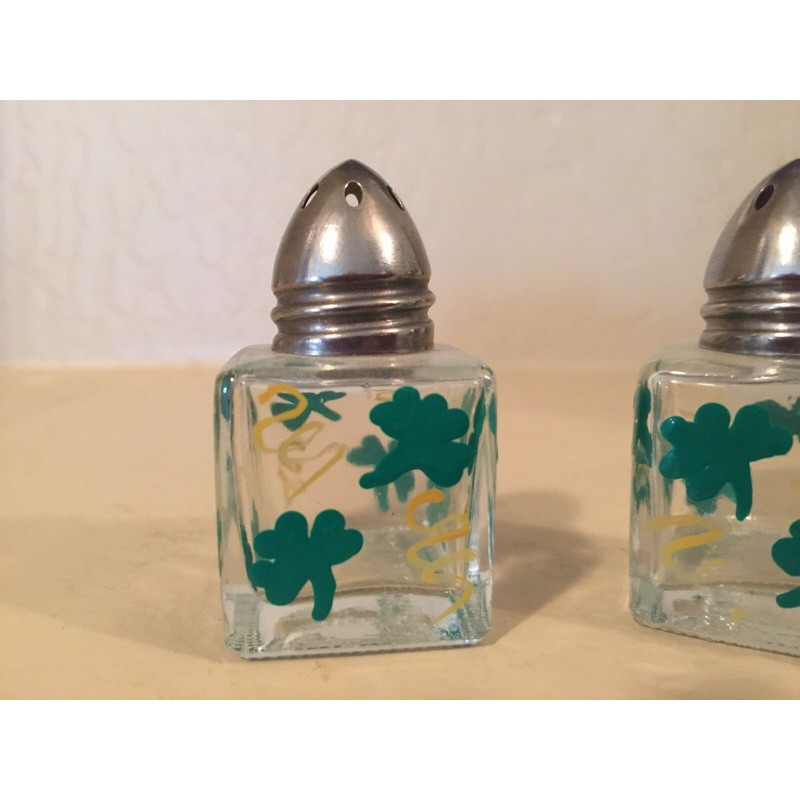 Set of 1/2 oz St Patrick’s Day Hand painted green shamrock Salt and Pepper Shakers This set is hand painted with acrylic paint. Paint is baked on which makes it permanent. Dishwasher safe...but hand washing is safer!