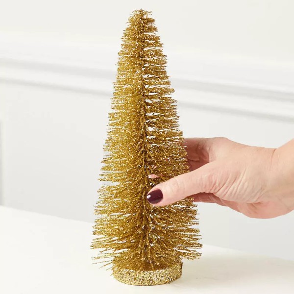 Sparkling Gold Glittered Bottle Brush Holiday Miniature Trees for Embellishing Christmas and Holiday Displays