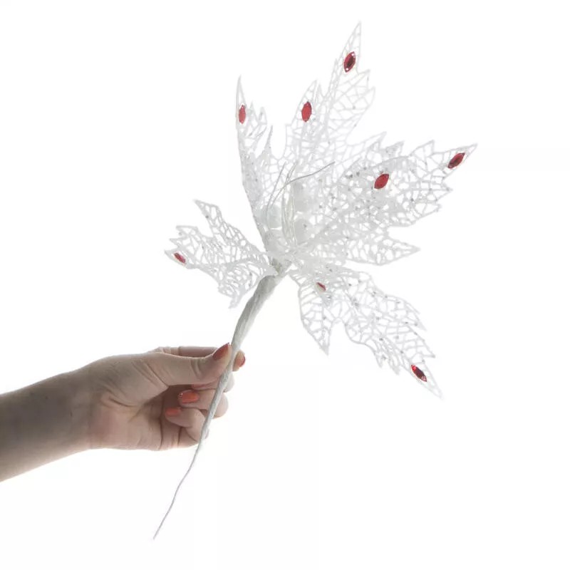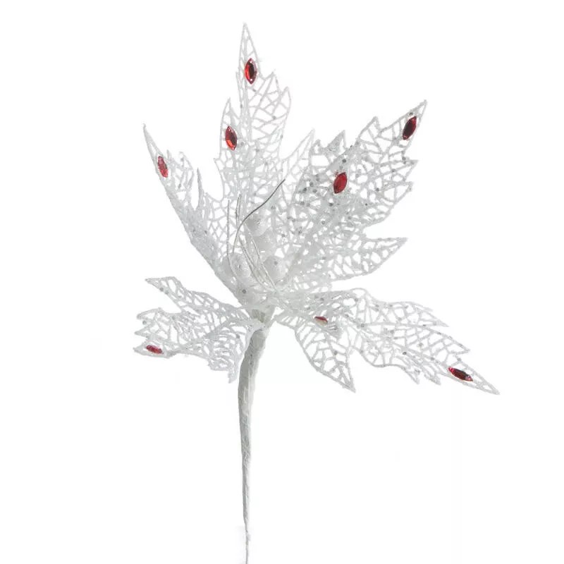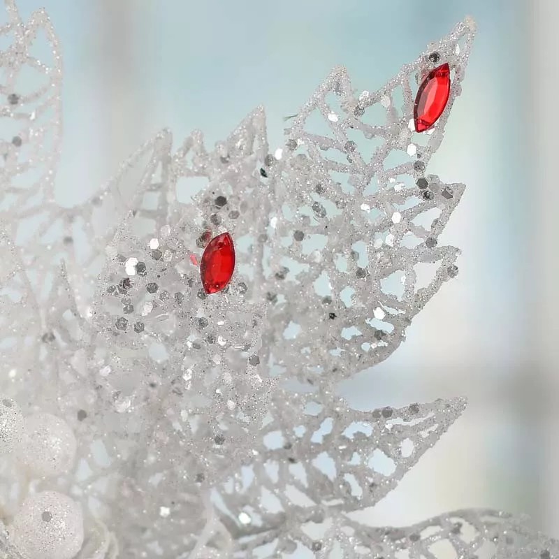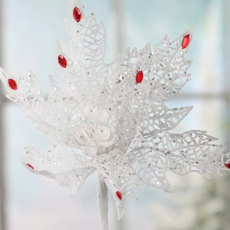 Elegant Sparkling White Mesh Poinsettia Picks for Holiday and Home Decor.