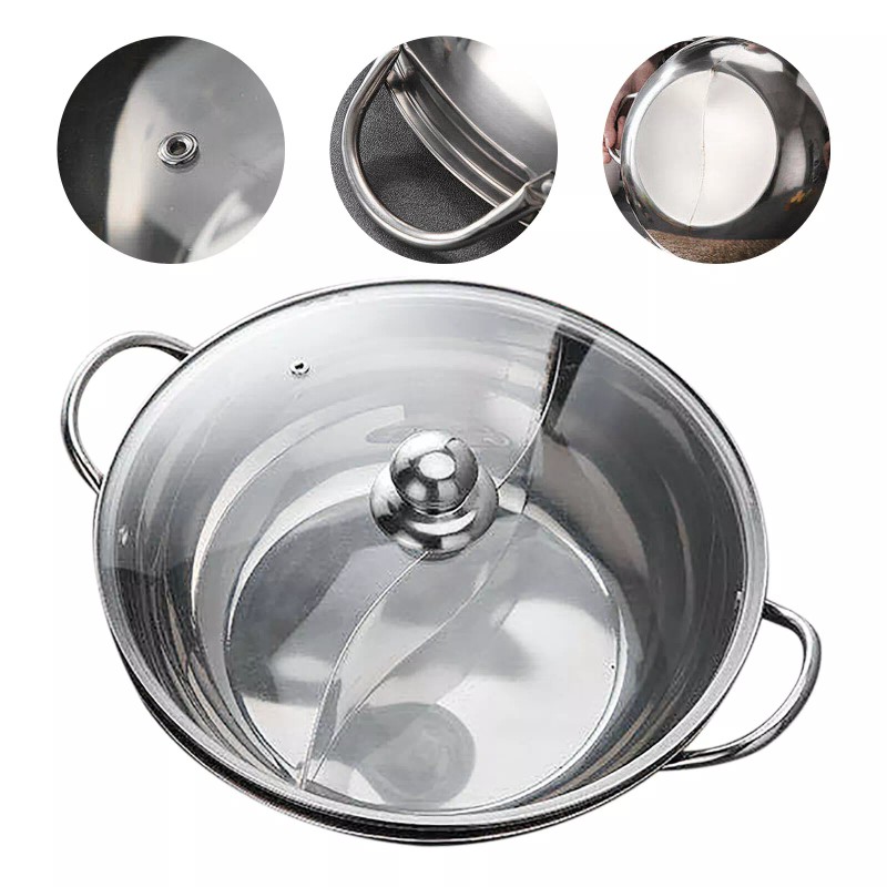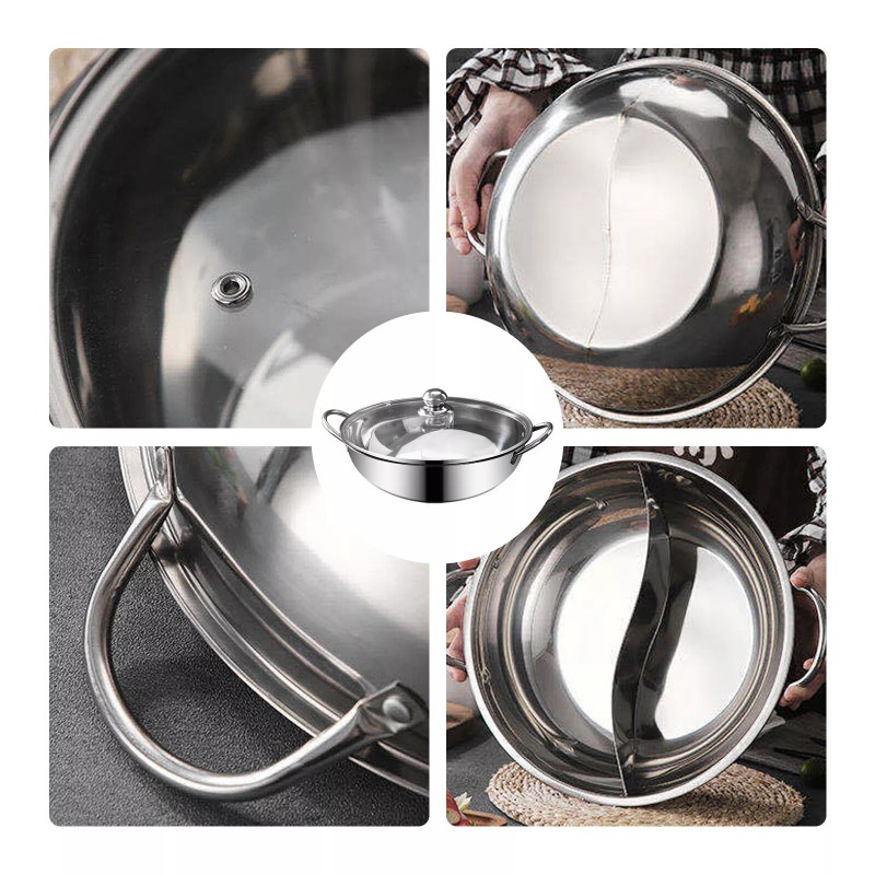 Unbranded Shabu Pot HotStainless Steel Cookware Soup Induction Nabe Lid Cooking Dual Side