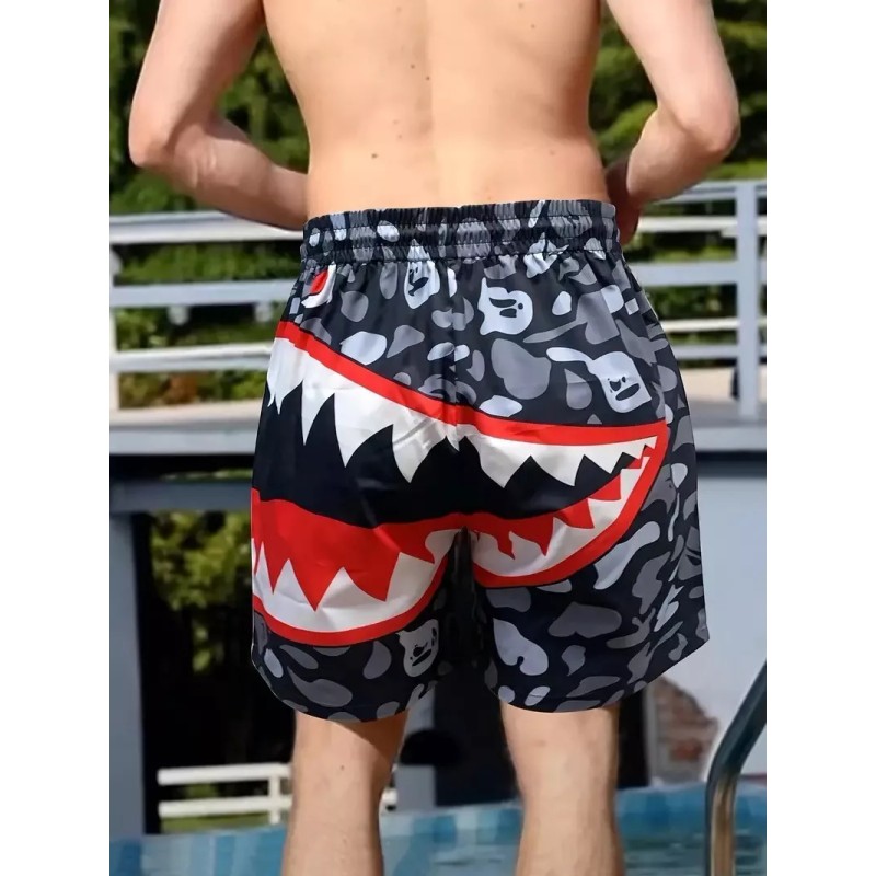 Unbranded Shark Teeth Swim Trunks Swimming Board Shorts Black Gray Men's Size Large