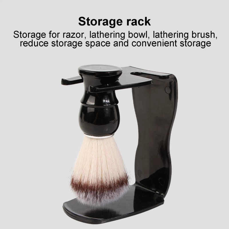 Safe Material: Made of ABS and nylon materials, this shaving brush holder is durable and sturdy. It helps you produce rich shaving foam with beard soap and keeps your brush dry and hygienic.