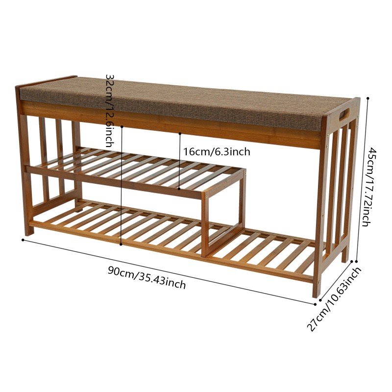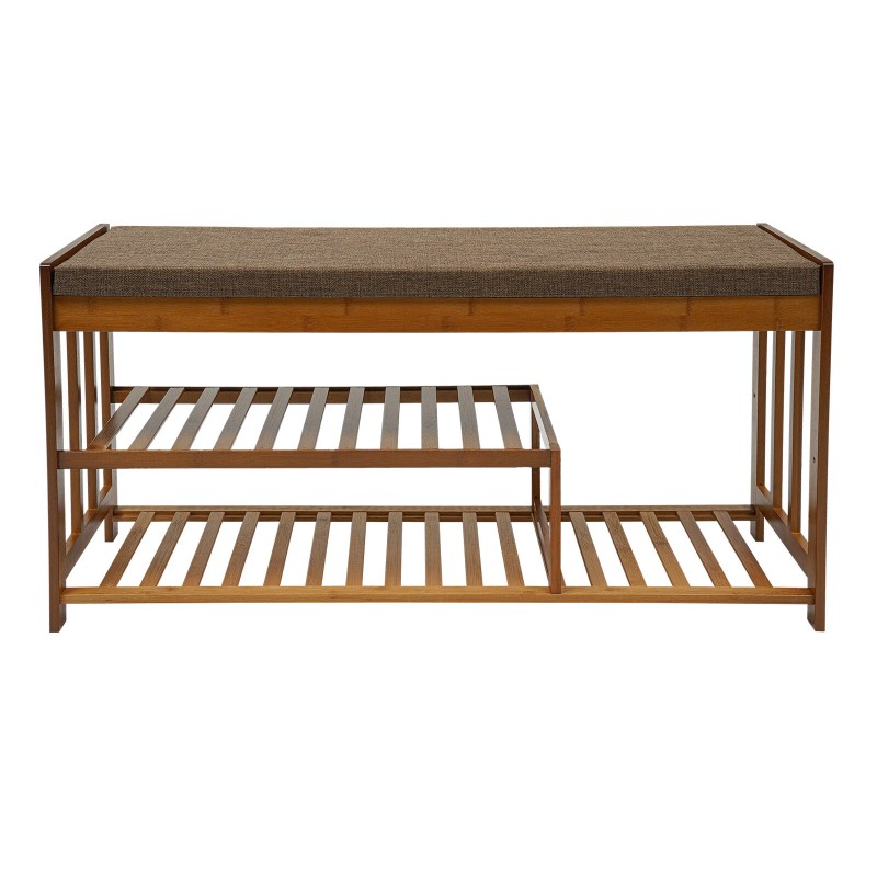 Shoe Bench With Cushion, Bamboo Porch Shoe Bench W/ Storage Entryway Shoe Rack