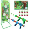 - 【Funny Shooting Game Kit】 - These air blaster toy guns are ideal for adding more fun and interactivity to the indoors or outdoor games. It comes with 2 foam popper toy guns, 24 soft foam balls(Green & Rose Red), and 1 forest theme target sturdy standing shooting target. Load, pump, and fire, shooting distance up to 20 feet. Lots of fun for the children!