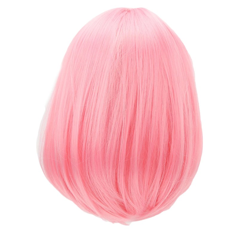 Unbranded Short Pink Bob Wig Headgear Fluffy Short Straight Bob Wig With Bangs For IBXH