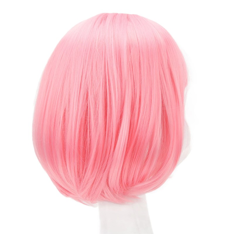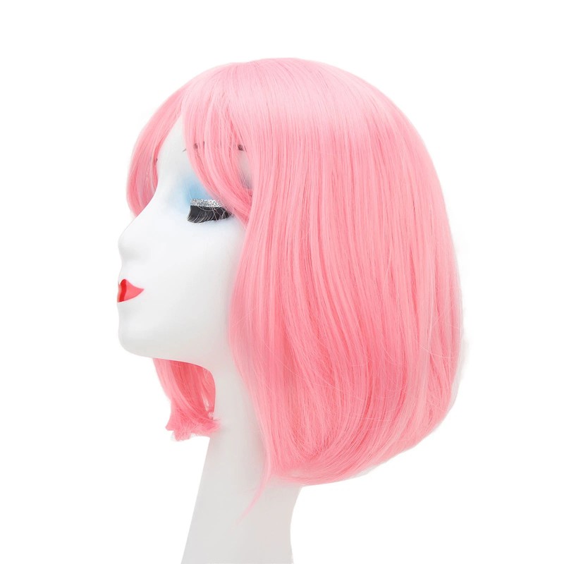Unbranded Short Pink Bob Wig Headgear Fluffy Short Straight Bob Wig With Bangs For LWNE