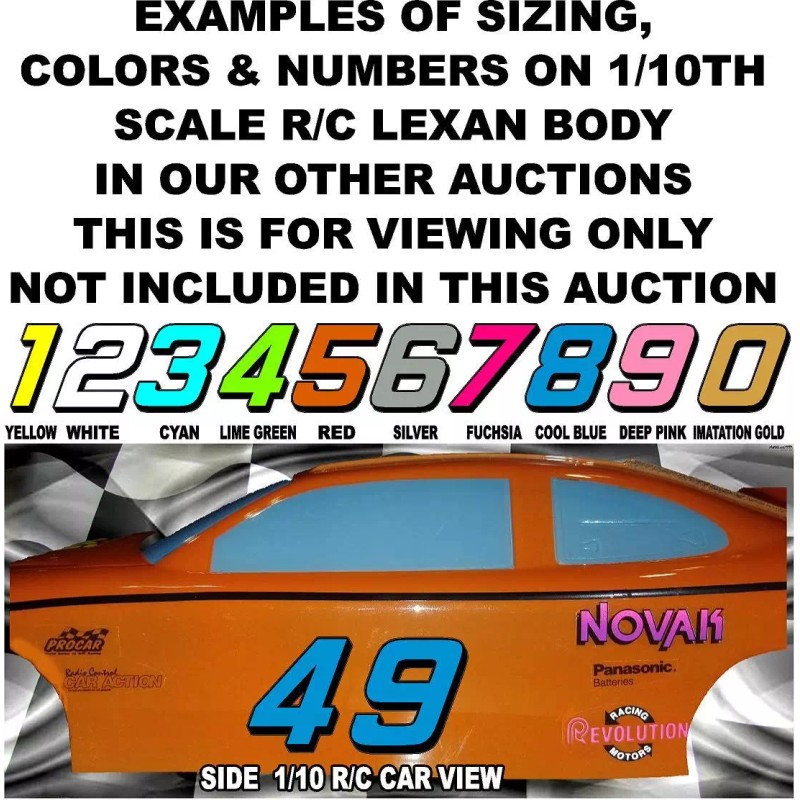 You are looking at high quality numbers for lexan bodies and or any other smooth area you wish to number in the R/c hobby world!