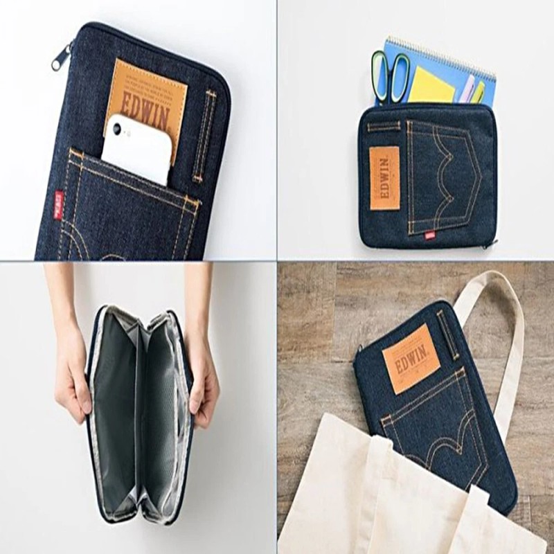 Unbranded Slim Design Non-Slip Durable Denim Storage Pouch with Card Document Compartments