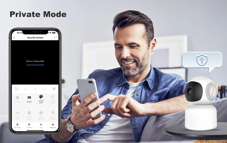 Privacy mode can better protect your privacy. You can turn on/off the camera at any time on the APP.