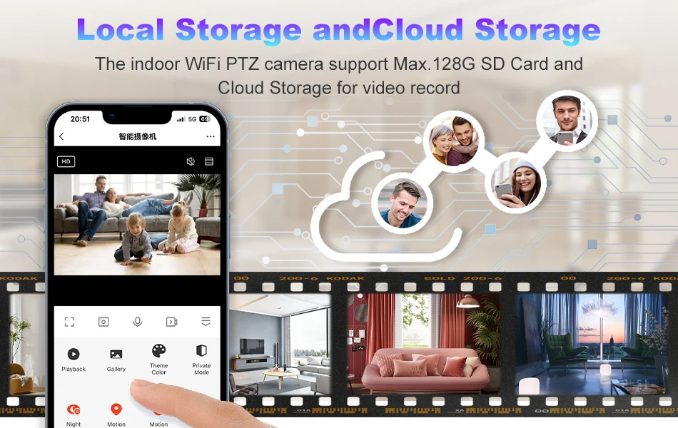 Support Max. 128G Mirco SD Card for local recording and alarm event recording. Support cloud storage service(NOTE: Cloud service is NOT Free)