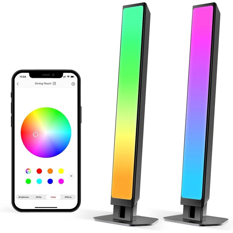 Enhance TV/Movie/Sports/Gaming experiences with the Smart Wi-Fi LED Multicolor Light Bars. Sleek and stylish light bars can be mounted to flat surfaces or stand in various directions. Control your lights in multiple ways – On/Off, dimming, color change, color temperature change, schedule, scene setting. Dynamic audio-sync with built-in micro for movie mode, game mode, music mode and more. Voice control using Alexa or Google Assistant.